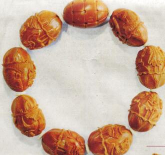 圆雕、通雕,外形上都能保持果核的原形。 为材料雕刻而成的。雕成之后,或是浮雕、 核雕是以橄榄、桃子、胡桃,甚至樱桃的果核