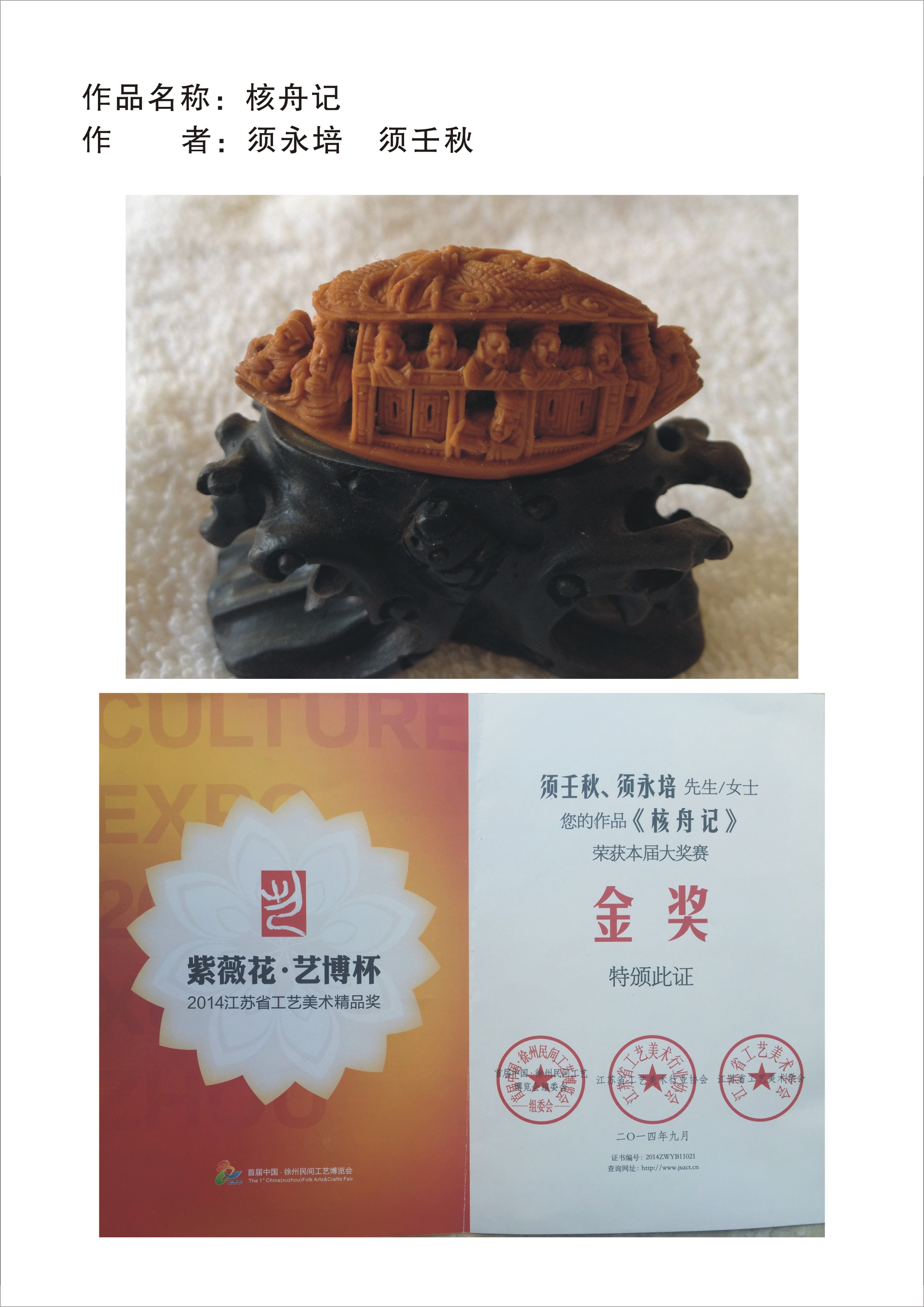 获奖证书及照片-须永培 须壬秋-核舟记