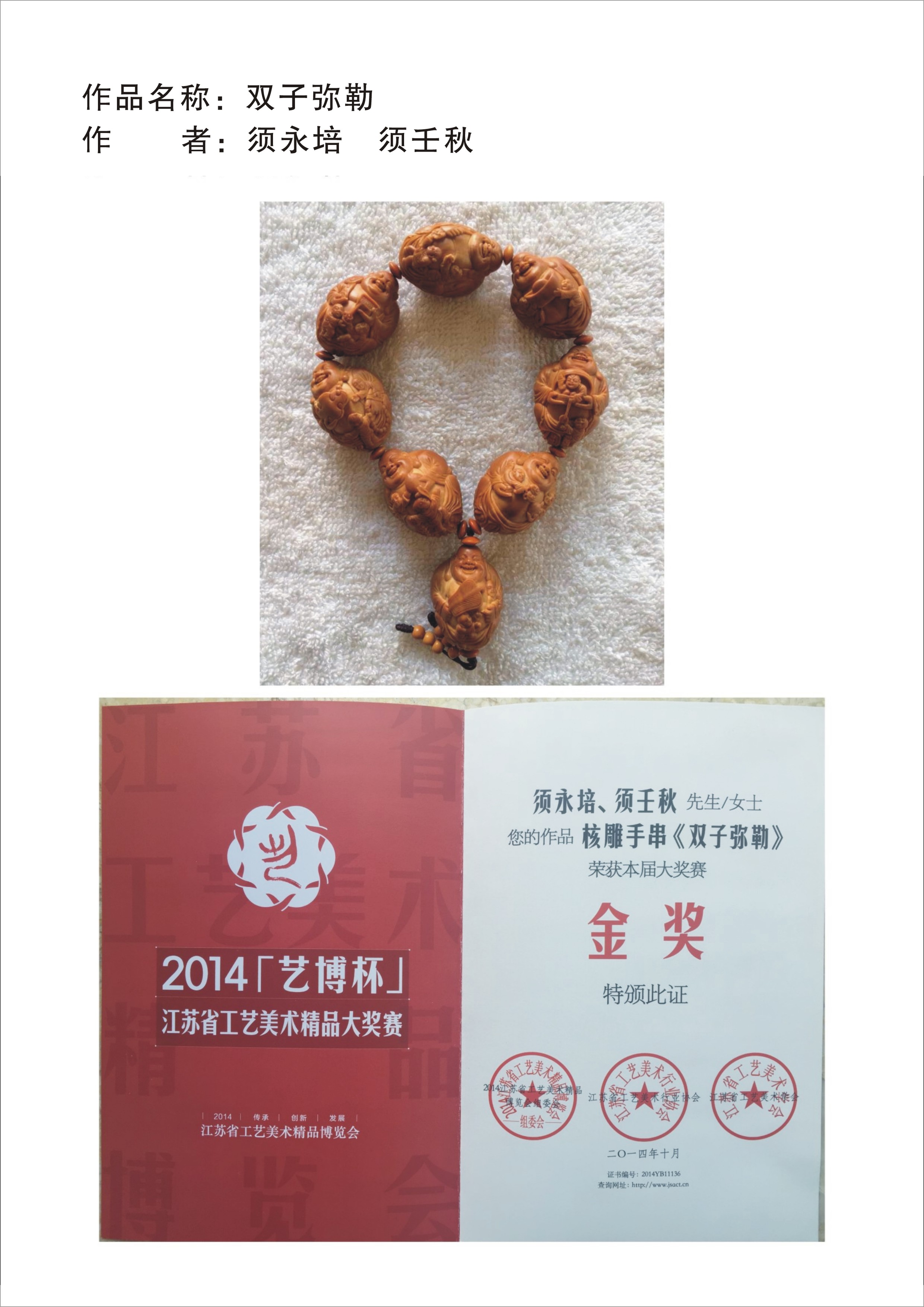 获奖证书及照片-须永培 须壬秋-双子弥勒