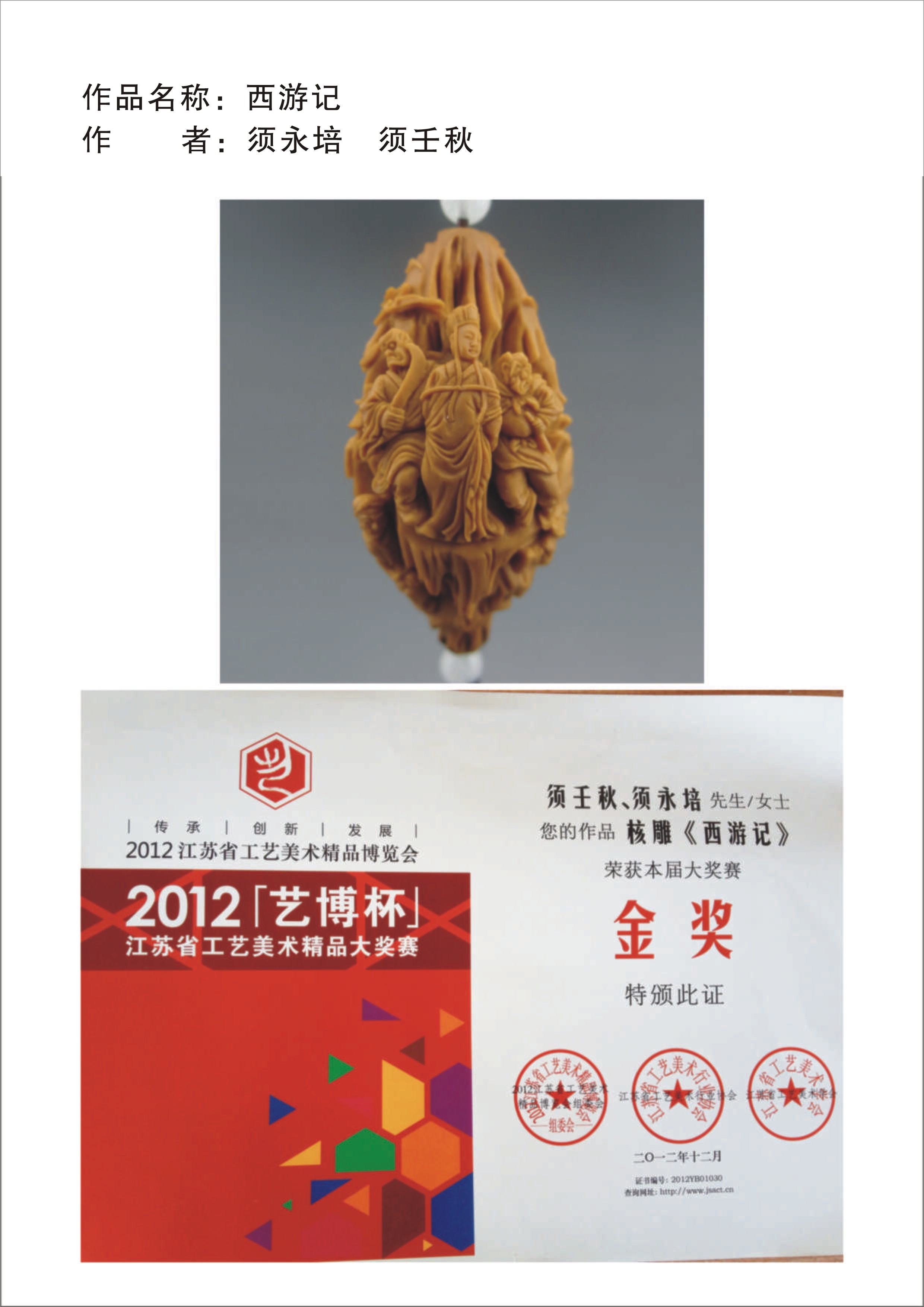 获奖证书及照片-须永培 须壬秋-双子弥勒
